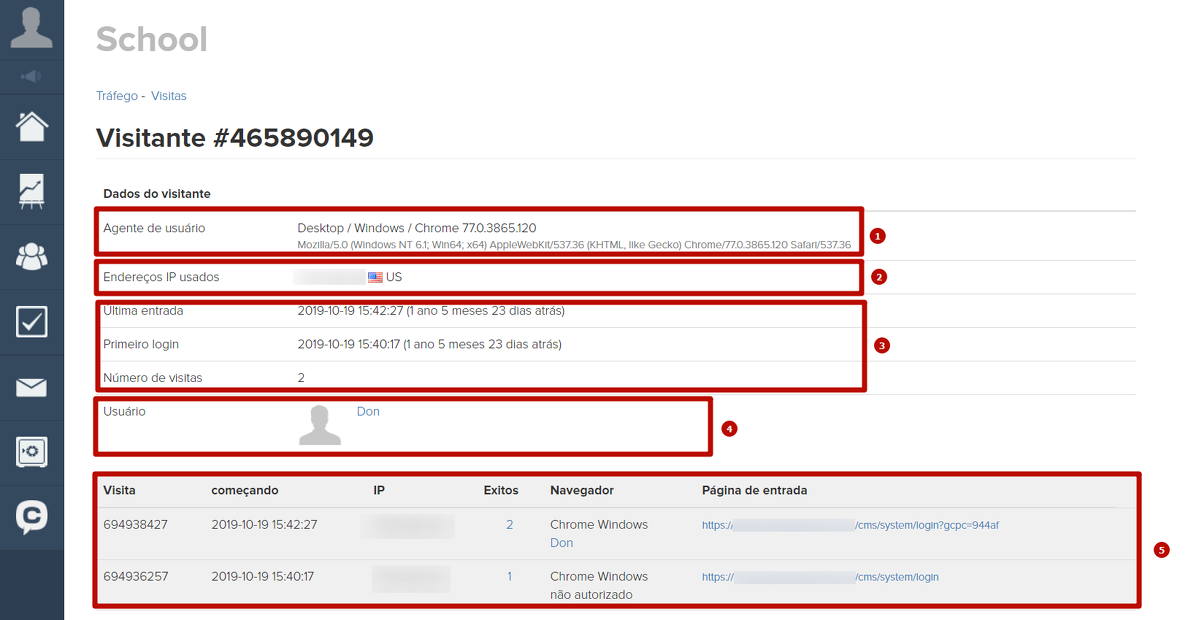 A análise das visitas do usuário permite determinar quem e quando entrou pela conta dele. Graças à ela, você pode identificar os usuários envolvidos em "compartilhamento de conta".