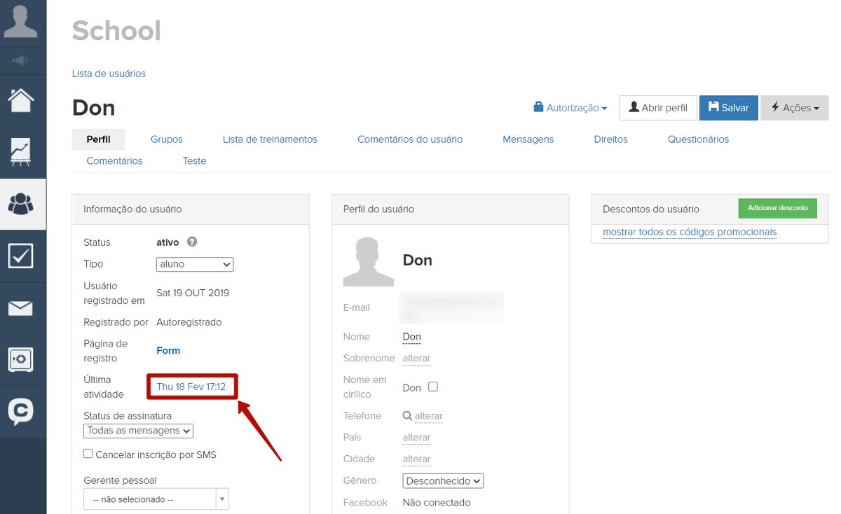 Ao clicar na data da última atividade no perfil de um usuário, você será levado a uma página com informações sobre as visitas dele: