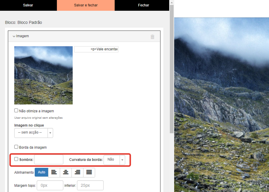 Se você marcar a caixa "mostrar container", os elementos do bloco serão cercados por um enquadramento com recuo. Você pode definir configurações, colocar bordas, escolher um estilo para elas e alterar o recuo dentro do container.