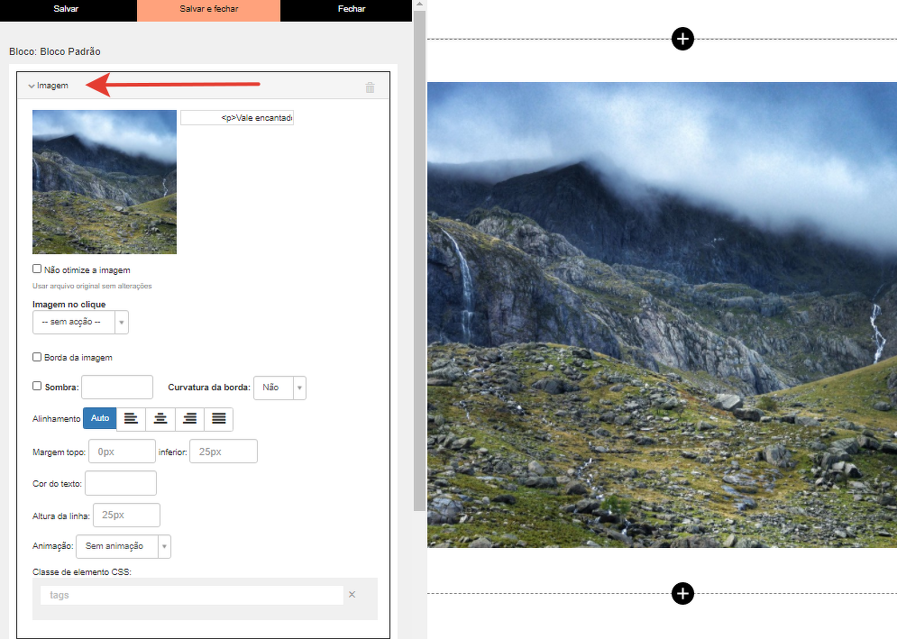 Você pode configurar a aparência do bloco na aba "Estilo":