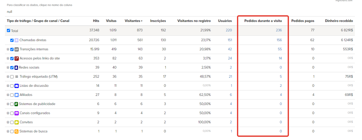 Inscrições - o número de registros no sistema pelo canal em questão durante o período de tempo considerado. Os registros mostram o número de novos usuários que acessaram o site pela primeira vez e deixaram seu e-mail.