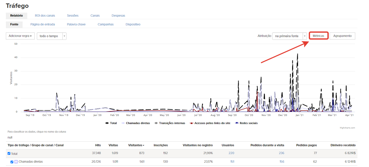 Atenção: o encaminhamento por sistemas de publicidade (por exemplo, Yandex.Direct e outros) é sempre considerado como uma visita separada.