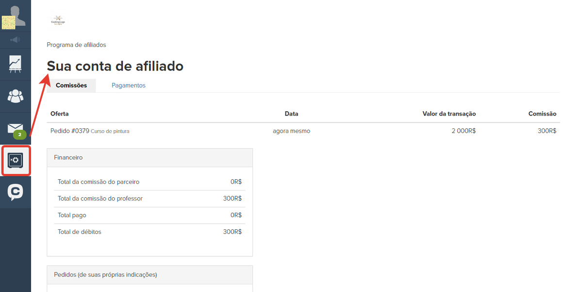 Na conta pessoal deles, aparecerá uma nova seção "Programa de parceria", na qual poderão ver informações sobre suas comissões e pagamentos.