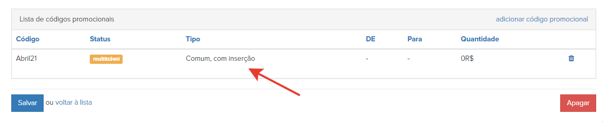 Uma das possibilidades deste elemento é forçar a aplicação de um código promocional que requer entrada às ofertas selecionadas por meio do elemento.
