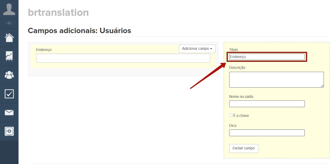 Atenção: o título do campo deve ser especificado para funcionar corretamente.