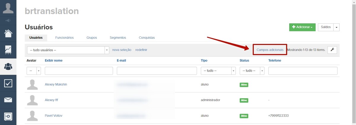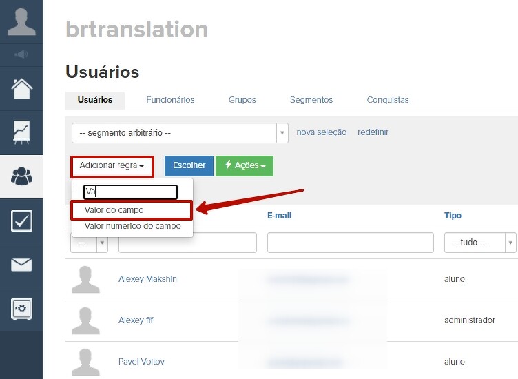 Você pode pesquisar e segmentar usuários pelo campo adicional.