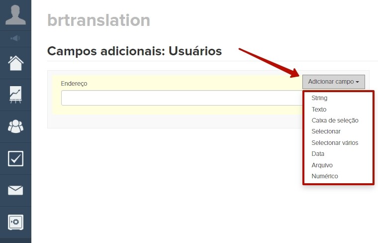 Você pode criá-lo na seção Usuários —> Usuários - > Campos adicionais.