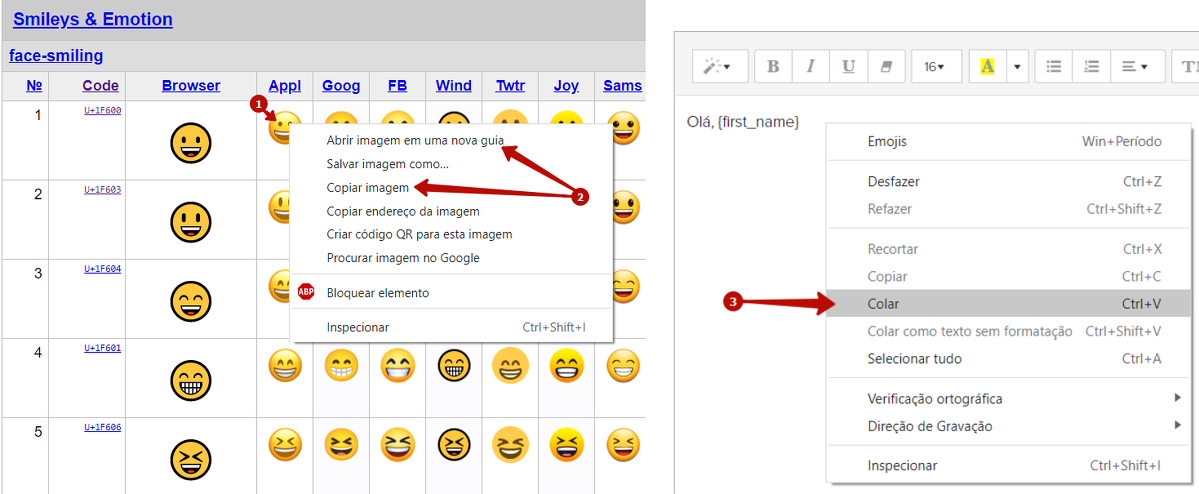 Se você utiliza emojis, emoticons ou outros caracteres especiais em newsletters, no construtor de páginas, na seção "Caixa de Entrada", nas aulas e nas respostas às tarefas, os seguintes métodos poderão ser usados para inseri-los: