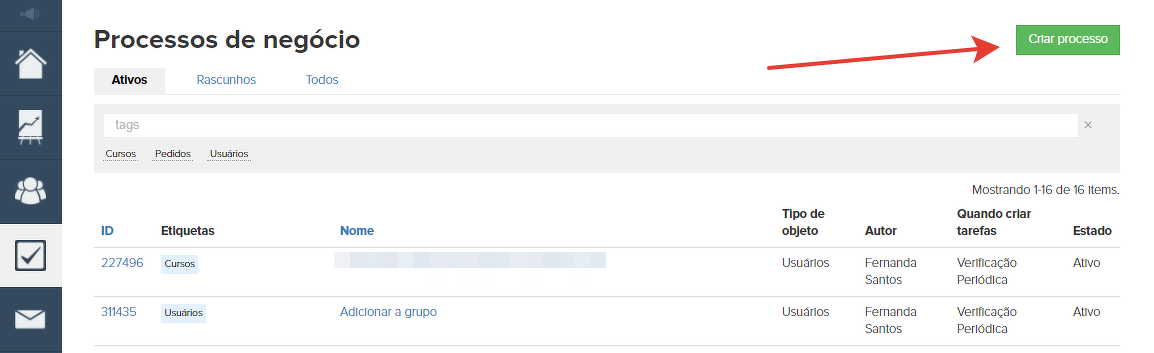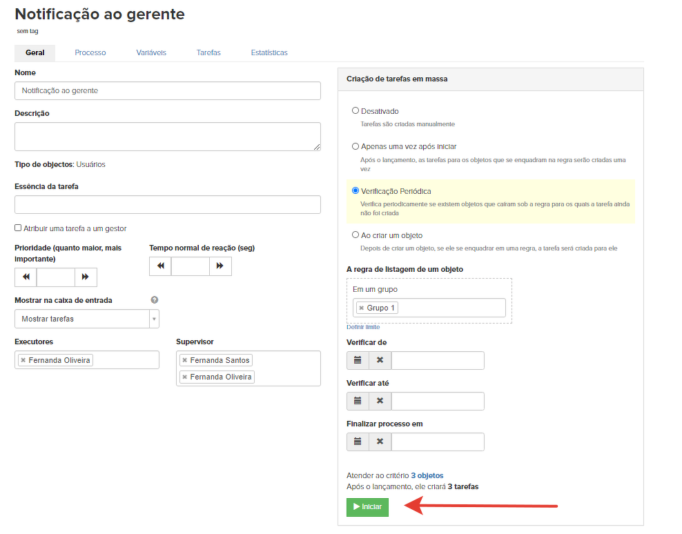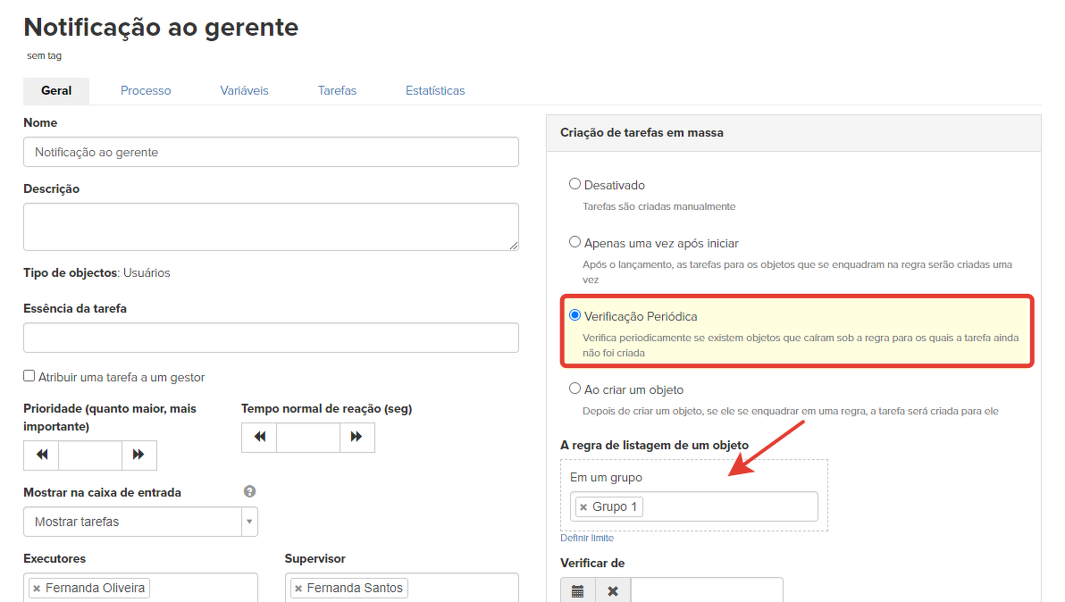 Agora, para os usuários que são adicionados ao grupo ao preencher o formulário, será acionado um processo com a notificação configurada.
