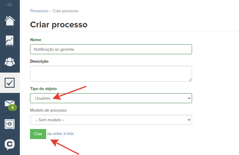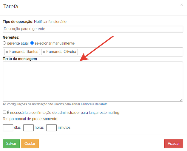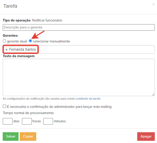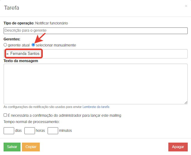 Agora, ao preencher o formulário, o funcionário especificado no processo receberá uma notificação com o texto especificado.