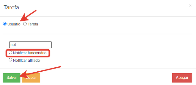 Observe que, nesse caso, você pode enviar uma notificação para um funcionário-gerente ou administrador.