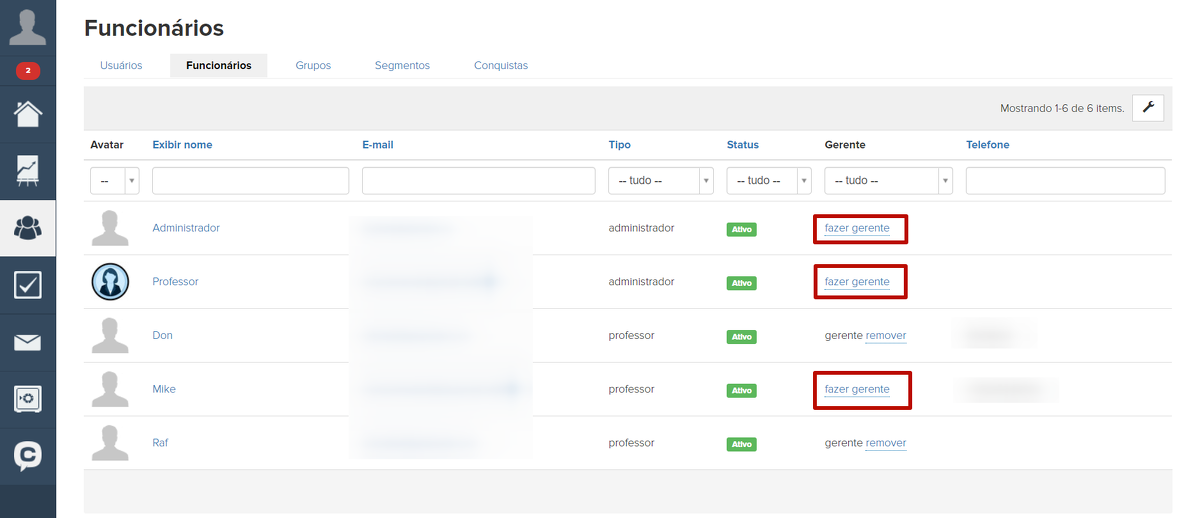 Ou entrar no módulo "Usuários" - aba "Colaboradores" - "fazer gerente".