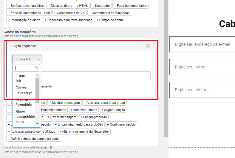 Por meio da função "Ação sequencial", como resultado do preenchimento do formulário, você pode executar vários scripts para o usuário.