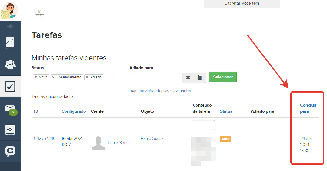 Em outros casos, a tarefa será vinculada ao usuário.