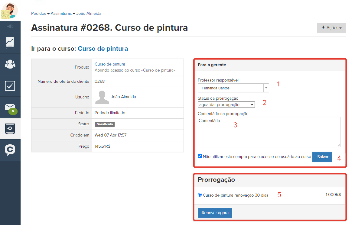 3. Adicionar comentários à renovação.