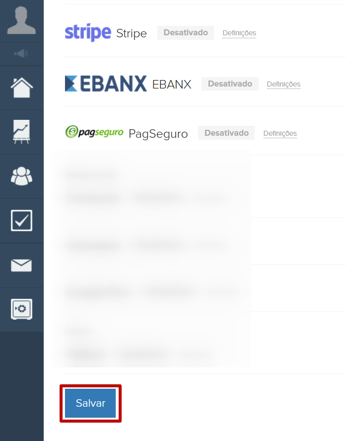 Não esqueça de salvar as alterações do sistema de pagamento na conta GetCourse.