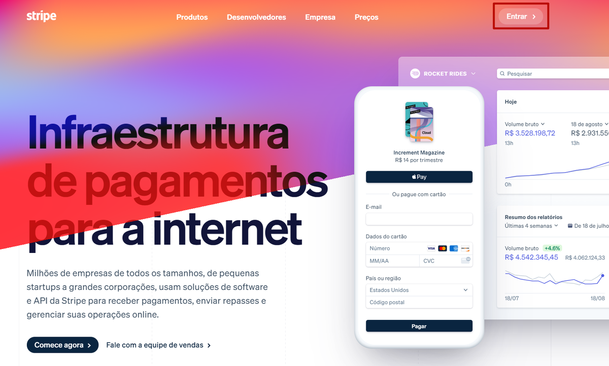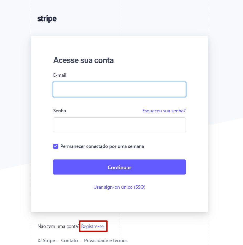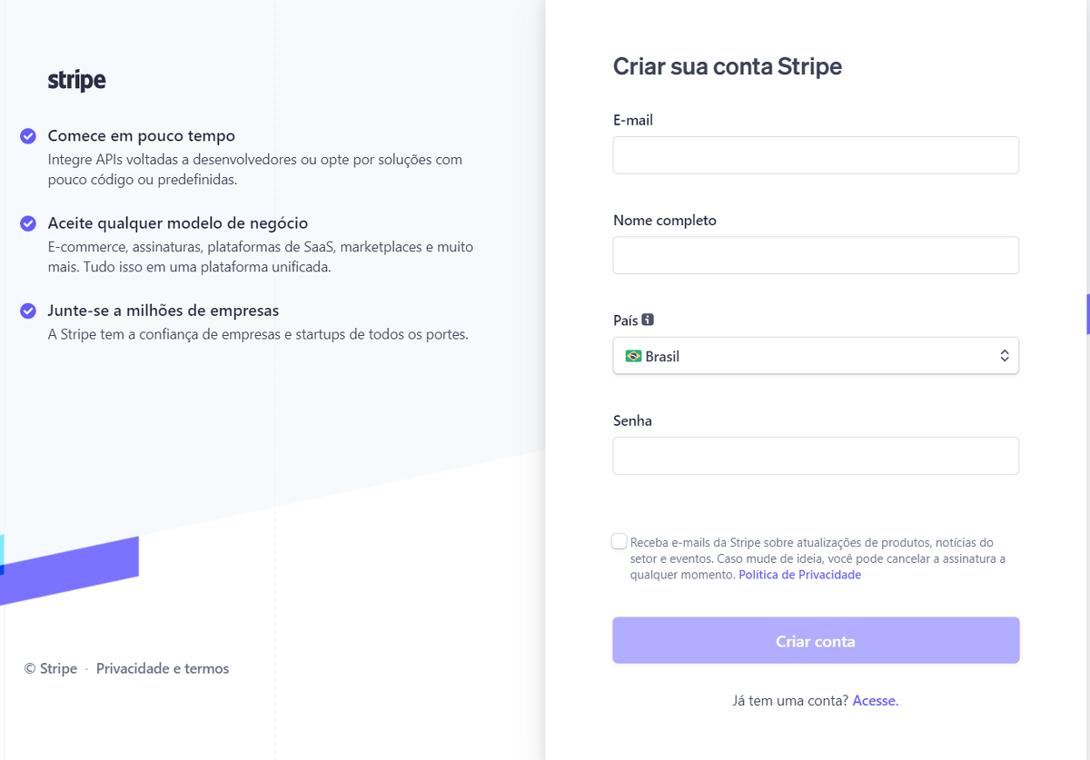 A lista de países que trabalham com o Stripe está disponível na página https://stripe.com/global.