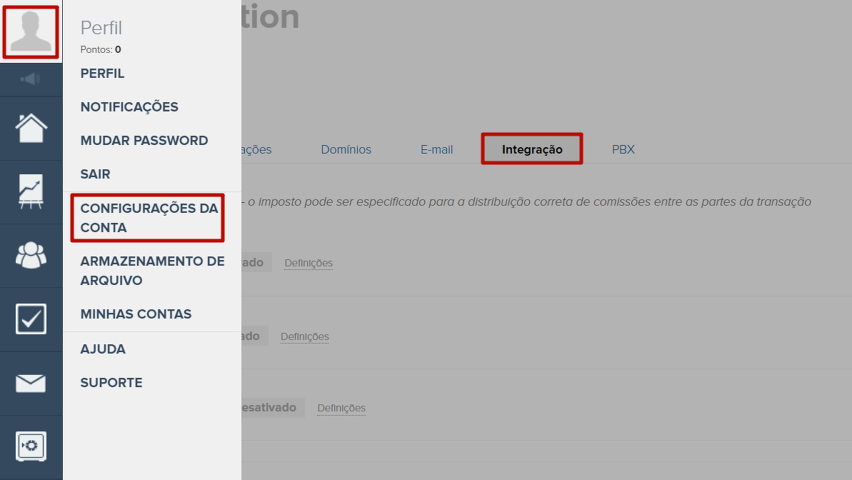 Para preencher os dados na GetCourse, vá em "Configurações da conta", aba "Integração".