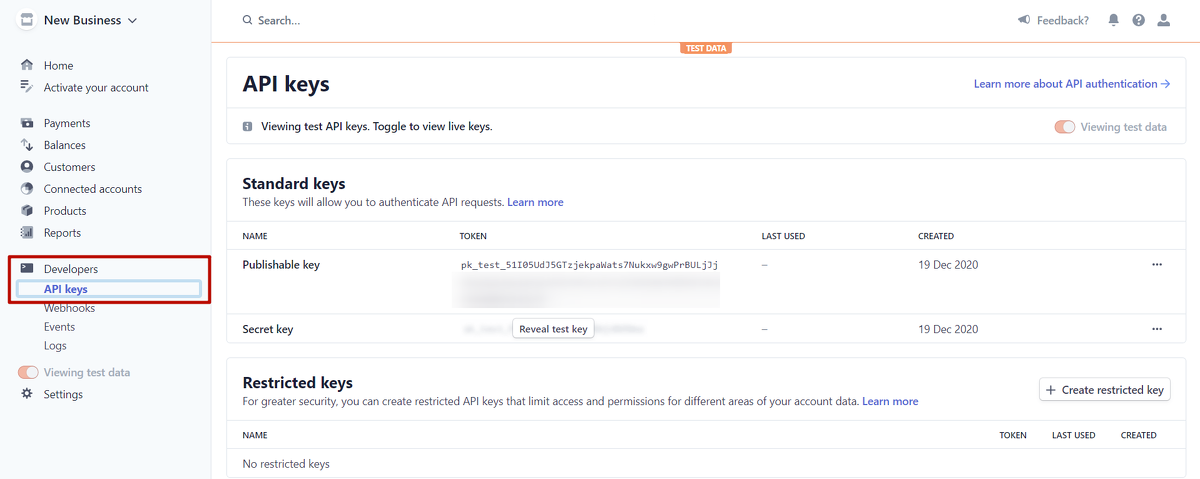 Depois, é necessário ir para a seção "Developers" - "API keys".