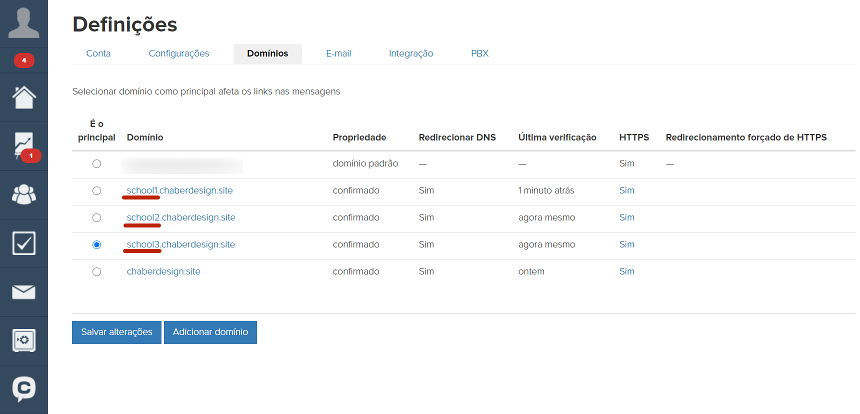 Sendo assim, não é necessário alterar o domínio principal.