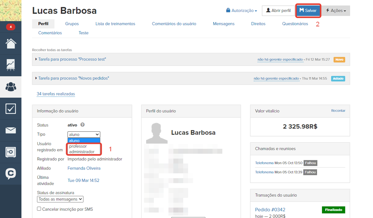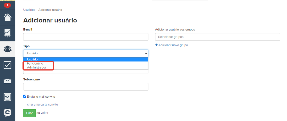 Ou designar o usuário desejado da sua lista de usuário como colaborador/administrador.