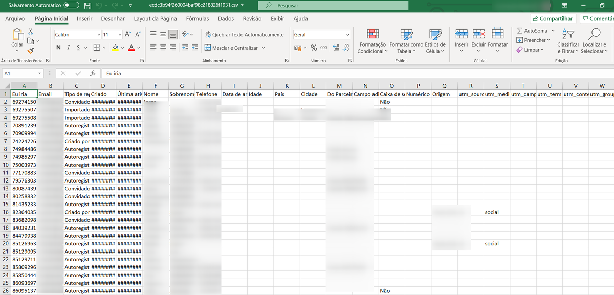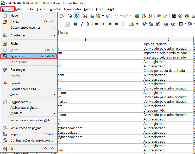 Para exportar os dados da GetCourse, baixa-se um arquivo no formato .CSV. Este também é o formato do arquivo utilizado para a importação.