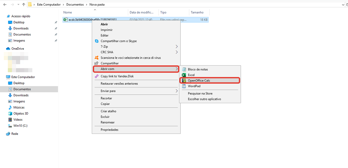 Se o programa padrão for, por exemplo, o MS Excel e o OpenOffice, então clique no arquivo com botão direito do mouse - "Abrir com" - "OpenOffice Calc".