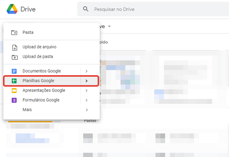 Crie um novo documento "Planilhas Google" no Google Drive.