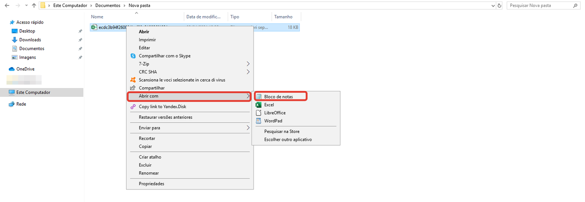 Clique nele com o botão direito do mouse - "Abrir com" - "Bloco de Notas".