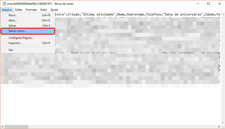 Se você quiser importar os usuários e não souber a codificação do arquivo, então o processo é semelhante: abra o arquivo com o Bloco de Notas e verifique, caso necessário, altere a codificação.