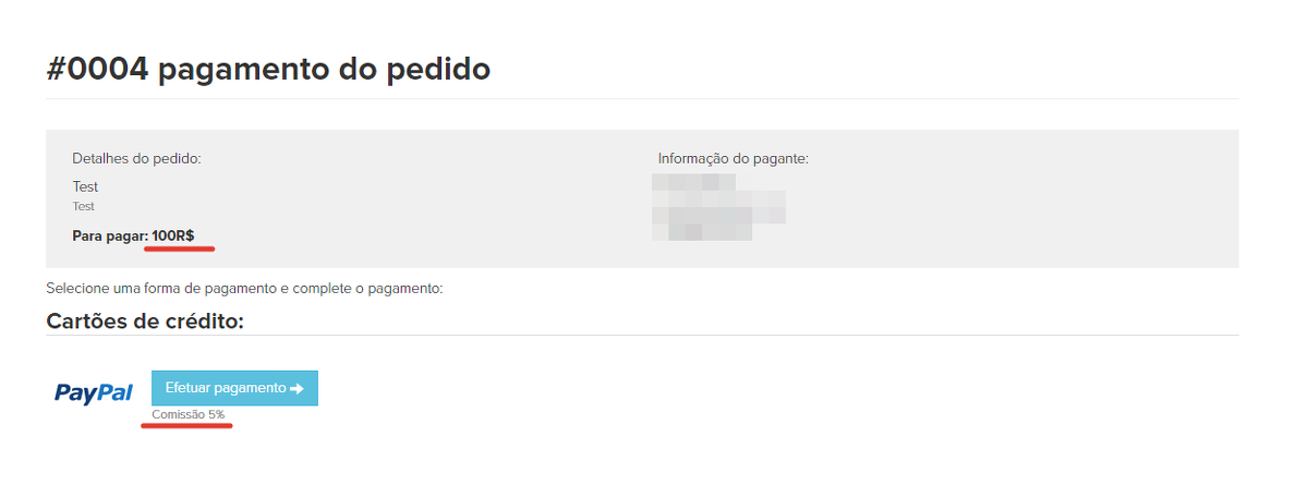Se uma comissão adicional para o usuário for indicada nas configurações do sistema de pagamento e o usuário tiver dinheiro no depósito, a comissão adicional é calculada de acordo com o tamanho da diferença entre o valor do pedido e o valor do depósito, no entanto, após o pagamento ser feito, nem todo o valor é debitado do depósito, mas apenas a diferença entre o valor do pedido e o tamanho do pagamento final (incluindo a comissão adicional)