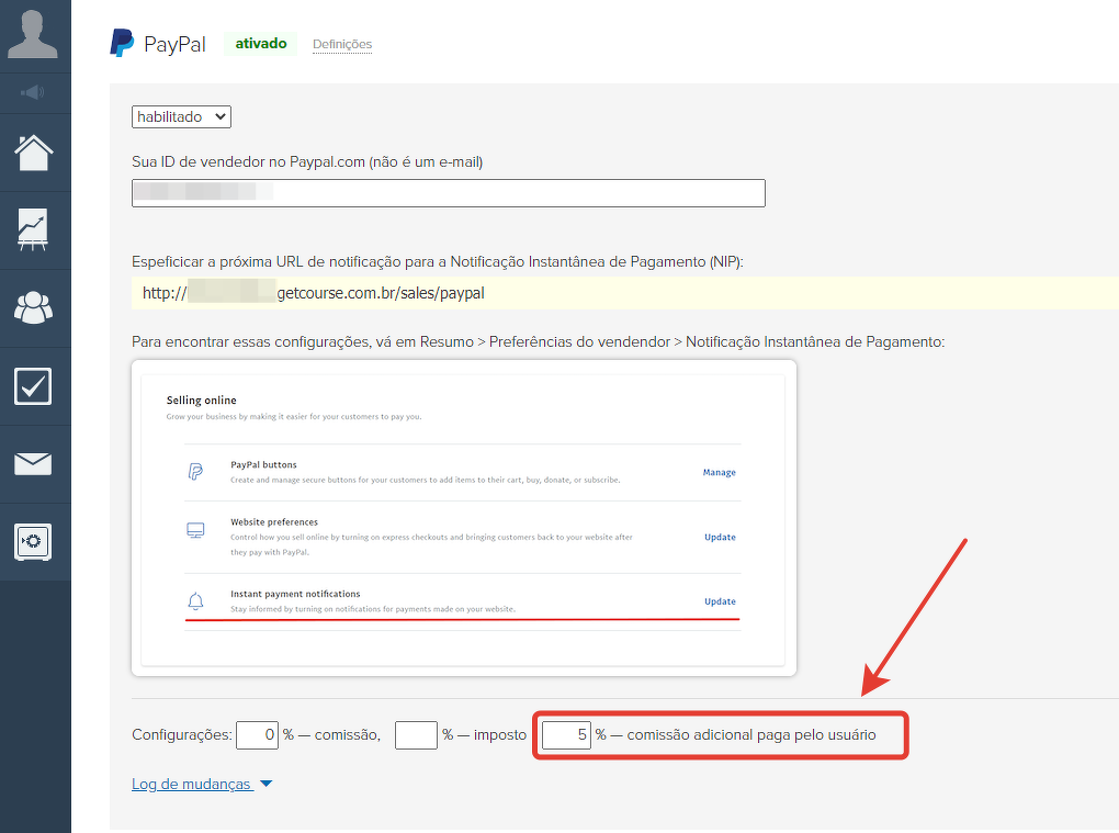 É possível alterar o percentual de comissão do sistema de pagamento na GetCourse?