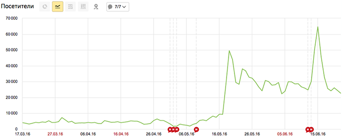 O tráfego diário após o início do anúncio cresceu em 7,5 vezes. Até o lançamento da campanha, nós recebemos cerca de 4 mil visitas na landing por dia. Após o lançamento, 30 mil visitas por dia.