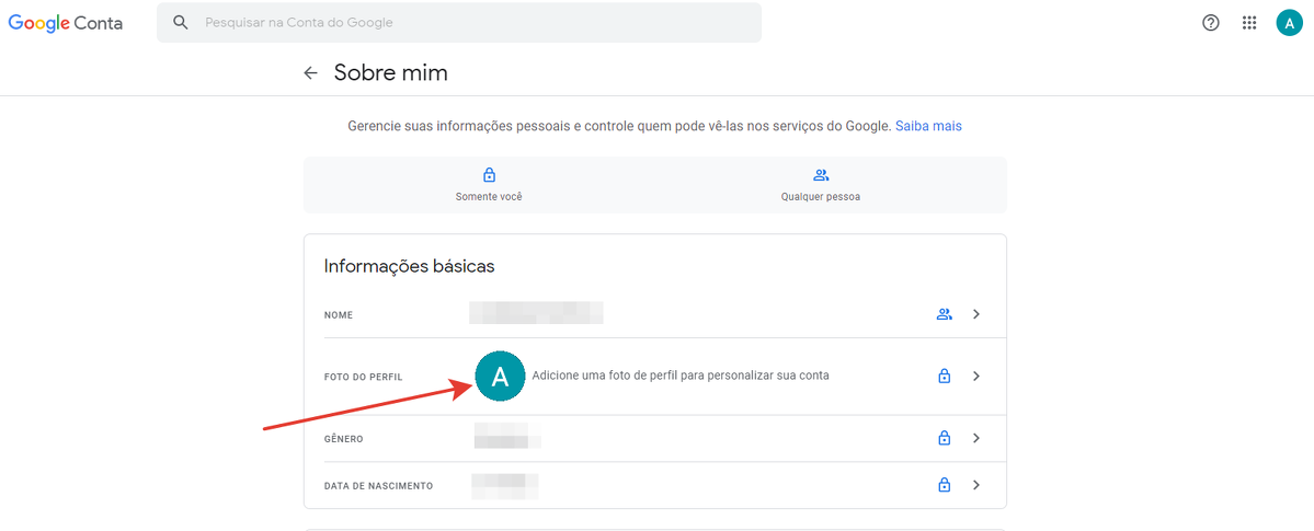 1. Clique no avatar do seu perfil na conta Google e, em seguida, no botão "Alterar".