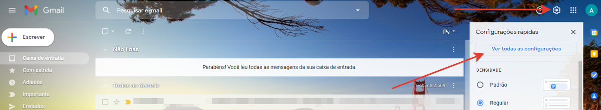 Clique no ícone com a imagem da engrenagem e vá para a seção "Configurações".