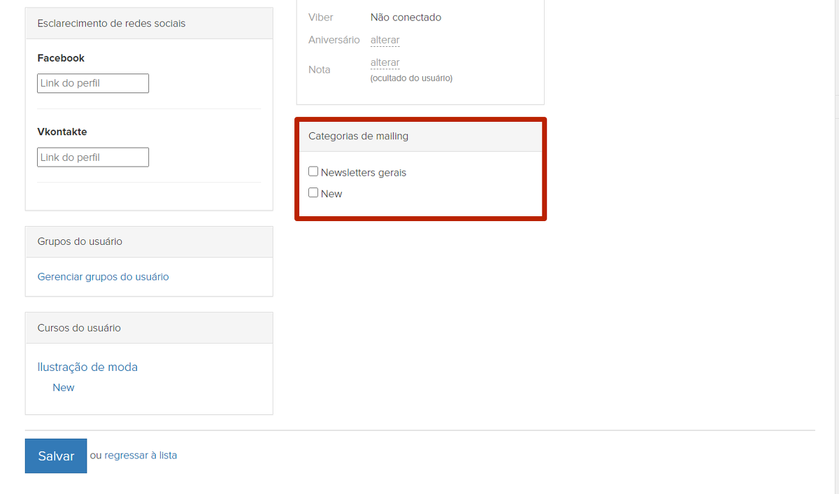 Não é recomendável utilizar essa categoria (exceto em casos de exceção), já que nela as listas de e-mail chegam mesmo que o usuário tenha cancelado a inscrição por completo de todas as listas de e-mail: