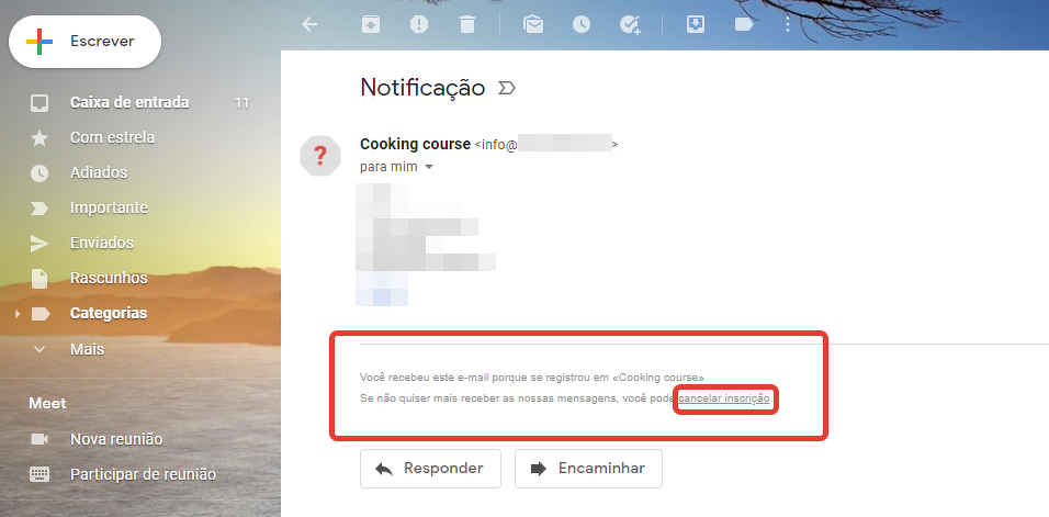 Em cada mensagem na GetCourse, há um bloco incorporado para que o usuário possa cancelar a inscrição.