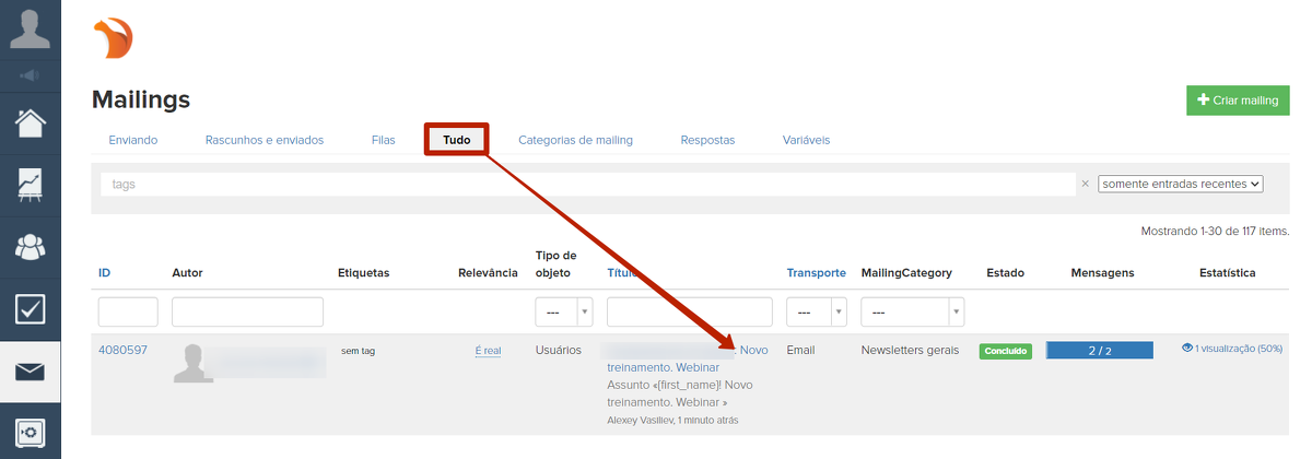 Importante: as notificações da aula serão enviadas apenas para os participantes do curso - são os usuários que têm acesso a ele, o status “Ativo” e são exibidos no curso na guia “Alunos”.