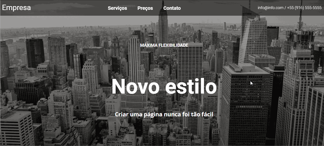 Após criar e editar a página, ela precisa ser publicada para que fique disponível para os usuários. Uma página pronta pode ter a seguinte aparência: