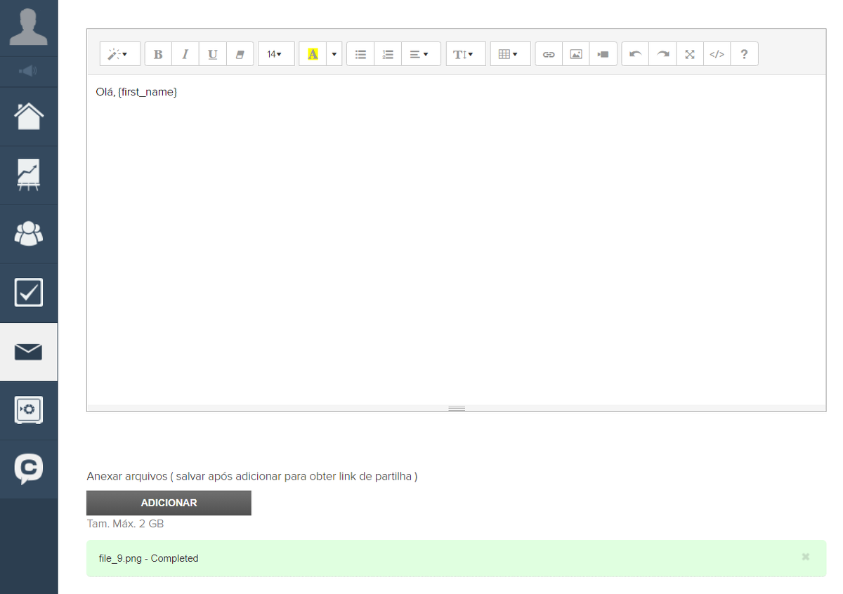 Não existe a possibilidade de anexar um arquivo ou vídeo à mensagem nas listas de e-mail da GetCourse.