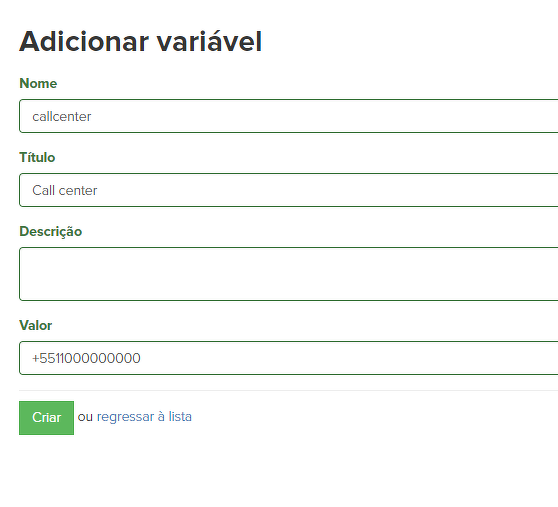 Por exemplo, você quer adicionar uma variável com o número de telefone através do qual os clientes podem entrar em contato com você. Se o telefone for alterado em algum momento, você simplesmente altera o valor daquela variável e o número também será alterado em todas as páginas e listas de e-mail. Não será necessário editar manualmente todas essas landings e listas de e-mail.