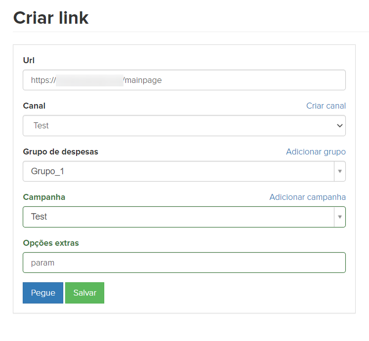 Pelo botão "Pegue", uma versão pronta completa e marcada com tags UTM do link é exibida: