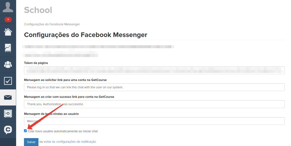 Se você coloca o anúncio do próprio messenger no Facebook, existe a possibilidade de transferir o cadastro a partir do anúncio para a conta GetCourse e também indicar para que grupo o usuário irá durante o cadastro.