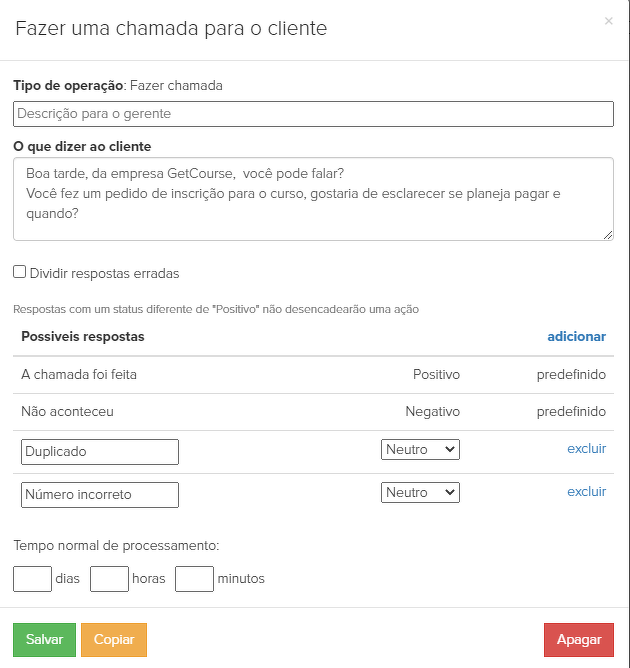 A possibilidade de adicionar roteiros é especialmente importante se você tem uma equipe espalhada: os funcionários do call center estão em cidades diferentes e não podem passar as informações diretamente.