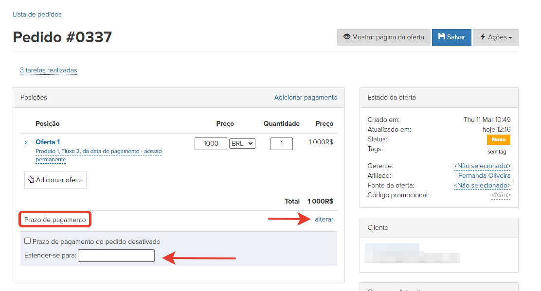 - o usuário quer condições especiais de pagamento: novo prazo, desconto.