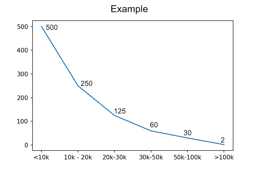 Construa um gráfico da relação entre as quantias trazidas pelos clientes e a quantidade de transações por um valor semelhante. Selecione um degrau nas quantias de compra, digamos, 5 ou 10 mil reais (ou o valor de um produto, de um curso on-line).