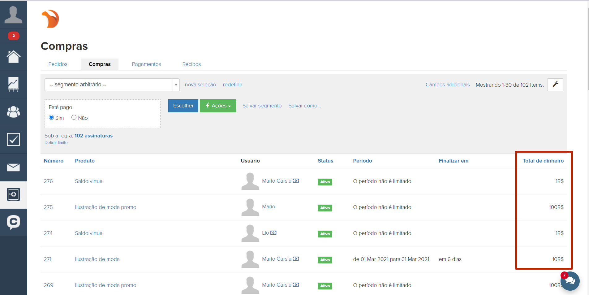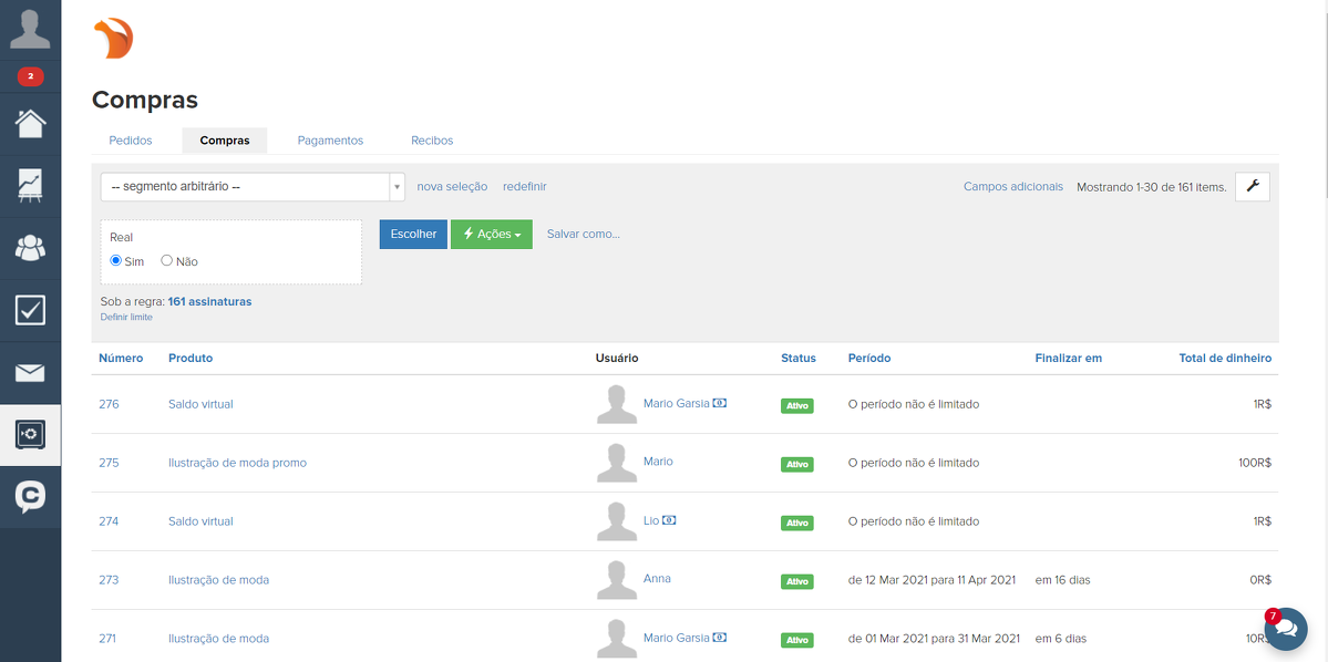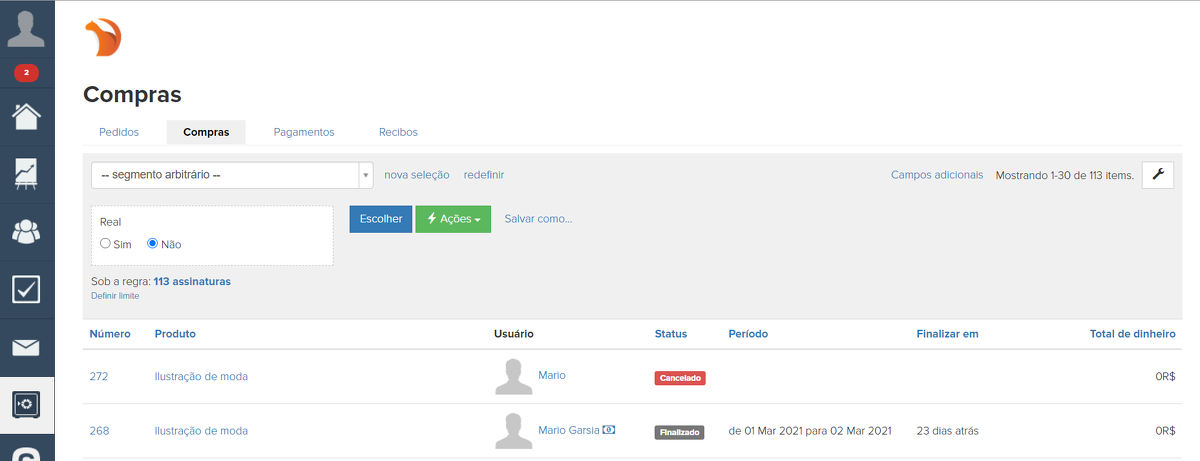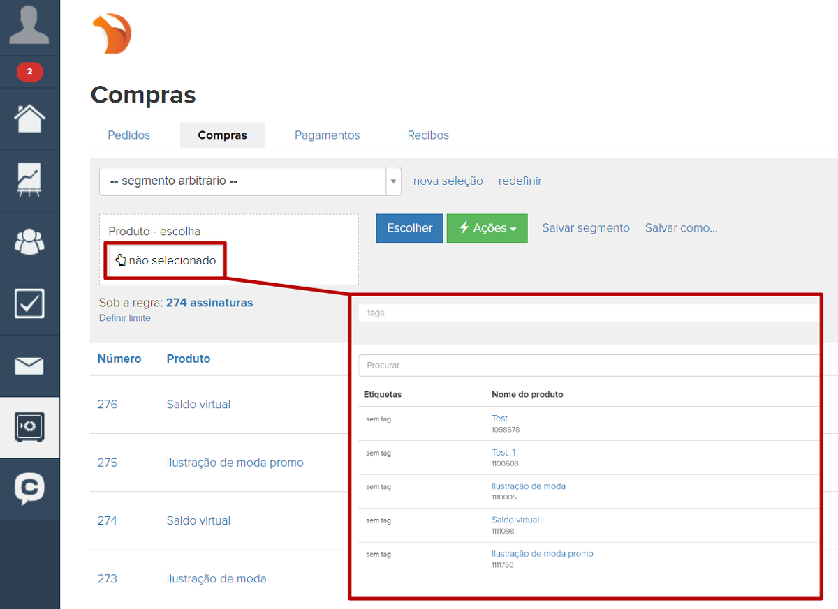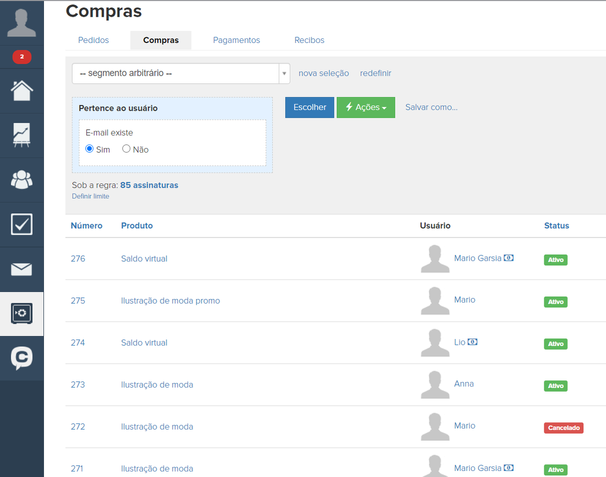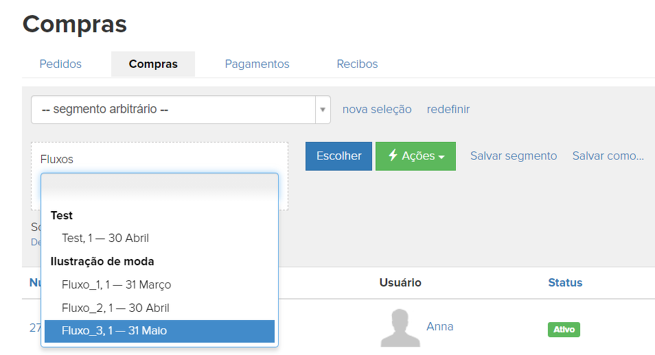 É possível fazer uma seleção por compras, salvá-la como um segmento e usar este segmento, por exemplo, ao configurar envios automáticos.