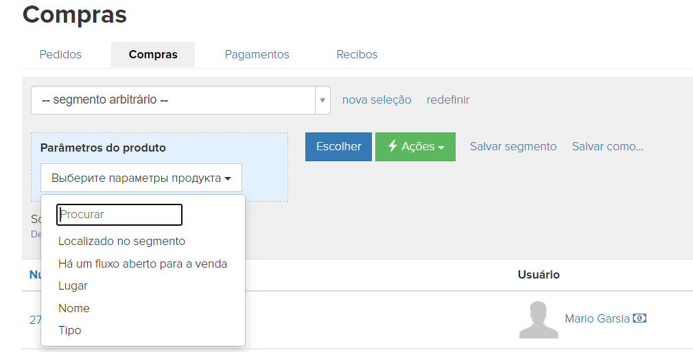 Estas condições permitem que você selecione as compras de um produto específico por seu nome ou parâmetro.