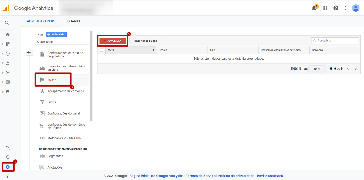 Você pode configurar as metas na aba "Administrador", se selecionar "Metas" → "+ Meta" no nível da apresentação