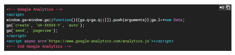 Para rastrear as interações do usuário com o seu site, o seguinte código de rastreamento analytics.js deve ser instalado: